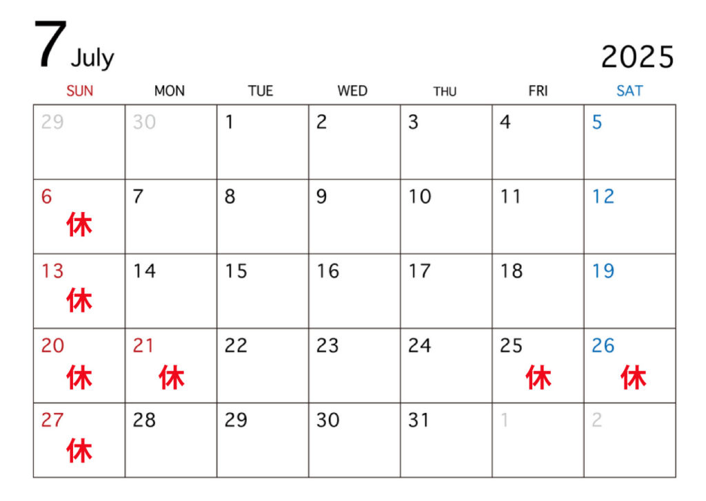 7月の営業日2025.07.01 Share この記事のタイトルとURLをコピーする共有: Facebook で共有するにはクリックしてください (新しいウィンドウで開きます) Facebook クリックして X で共有 (新しいウィンドウで開きます) X Post Share この記事のタイトルとURLをコピーする 8月の営業日次の記事